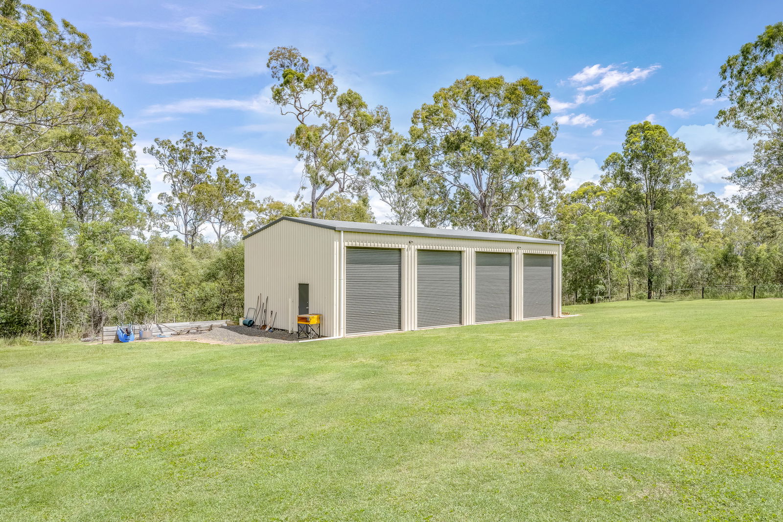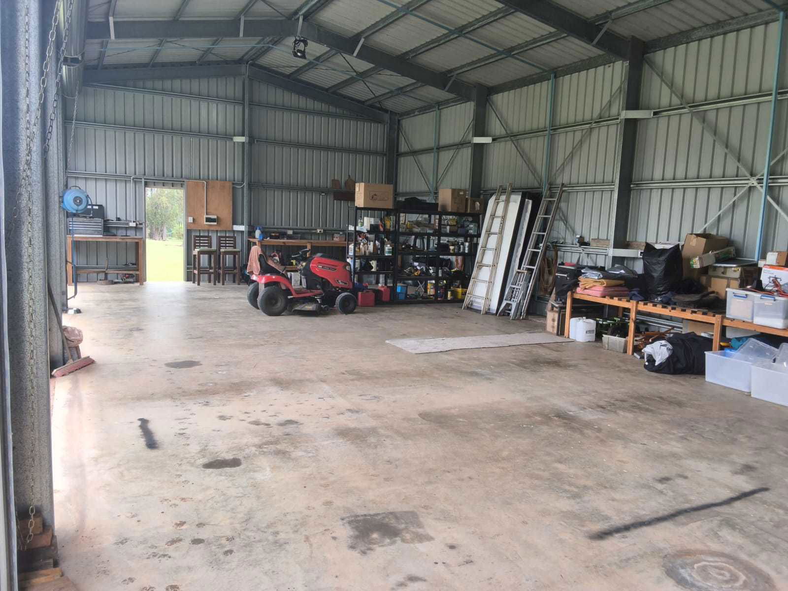 - Massive 4-bay shed (approx. 20m x 8m, 3.6m door height) with singe phase power.