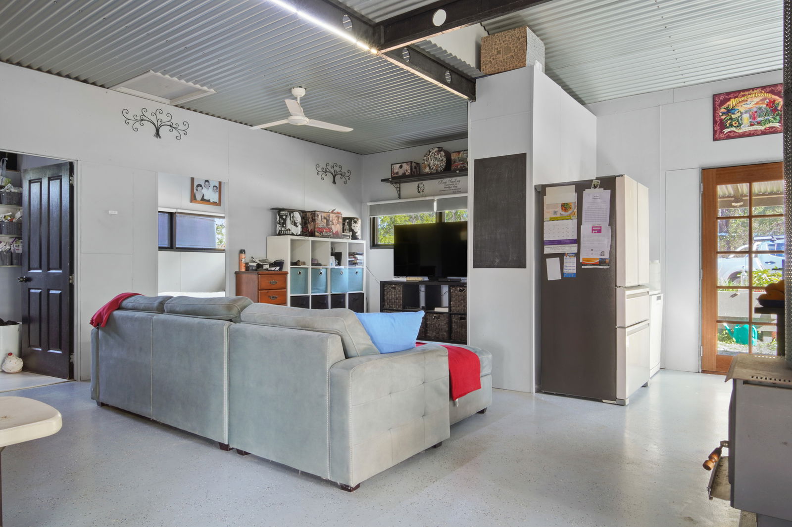 -Open-plan living area with epoxy concrete floors