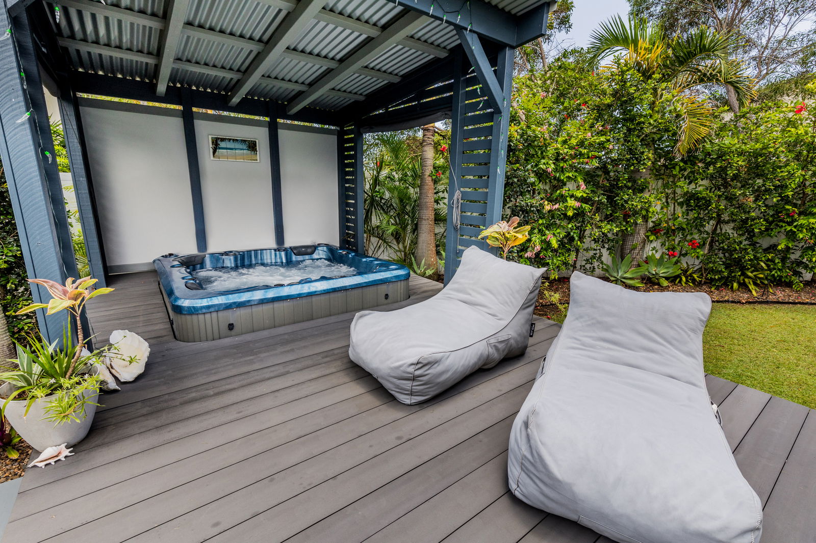 After a day at the beach, retreat to your private outdoor spa and unwind under the stars. Practicality meets sustainability with a 6.6kW solar system, town water, large rainwater tanks, and a bore servicing the gardens-ensuring efficiency without compromise.