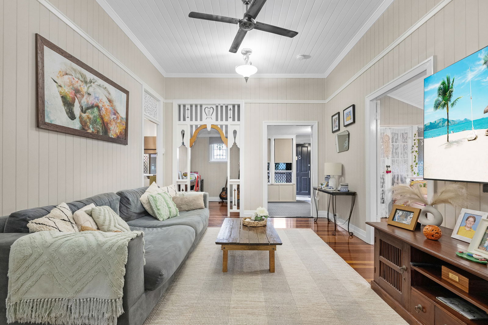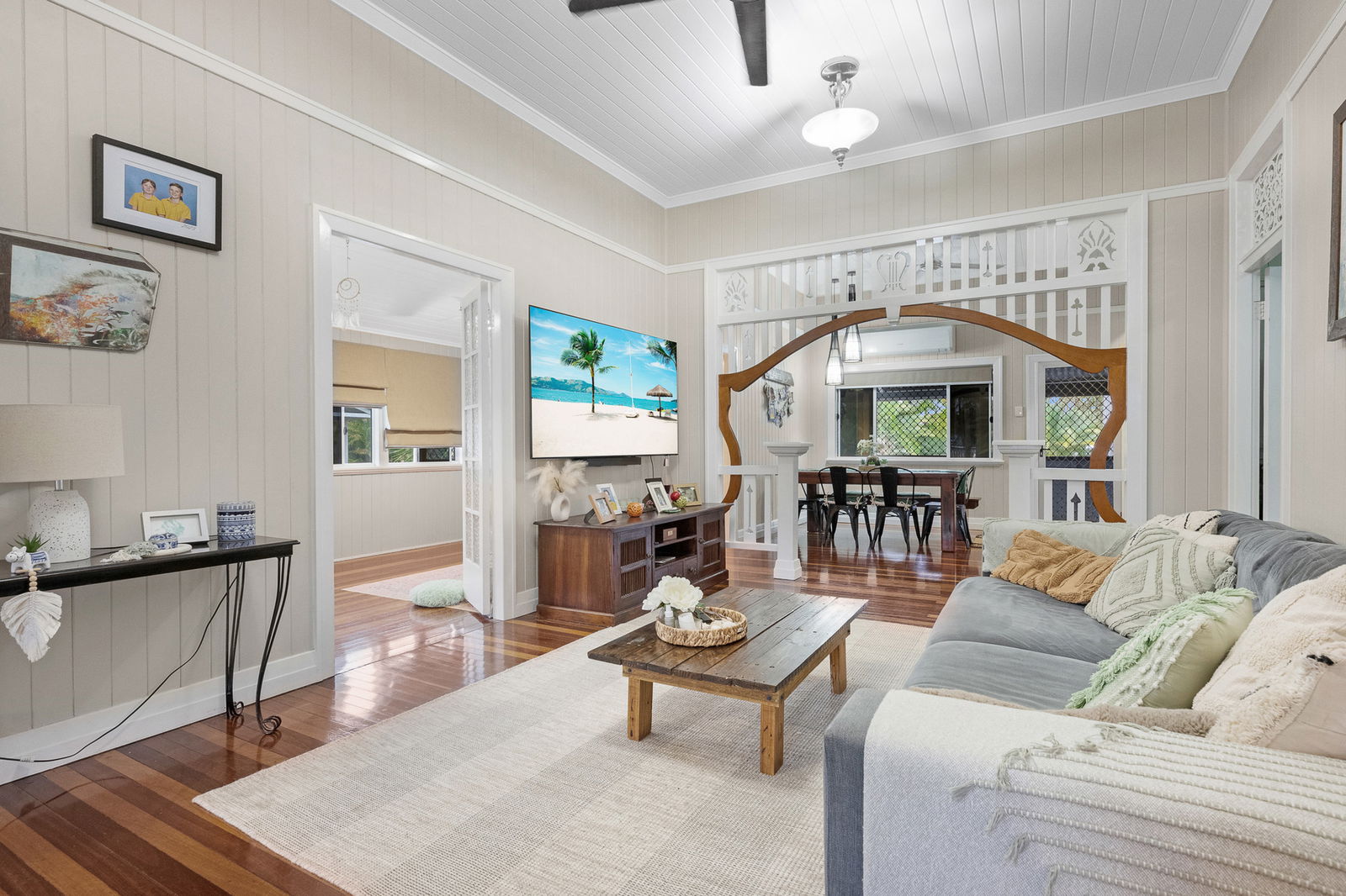 Behind its welcoming façade, you'll discover a home that's both charming and practical. Traditional Queenslander features including polished timber floors, VJ panelling, ornate room dividers, and high ceilings celebrate the home's era, while thoughtful updates ensure it's ready for today's lifestyle.