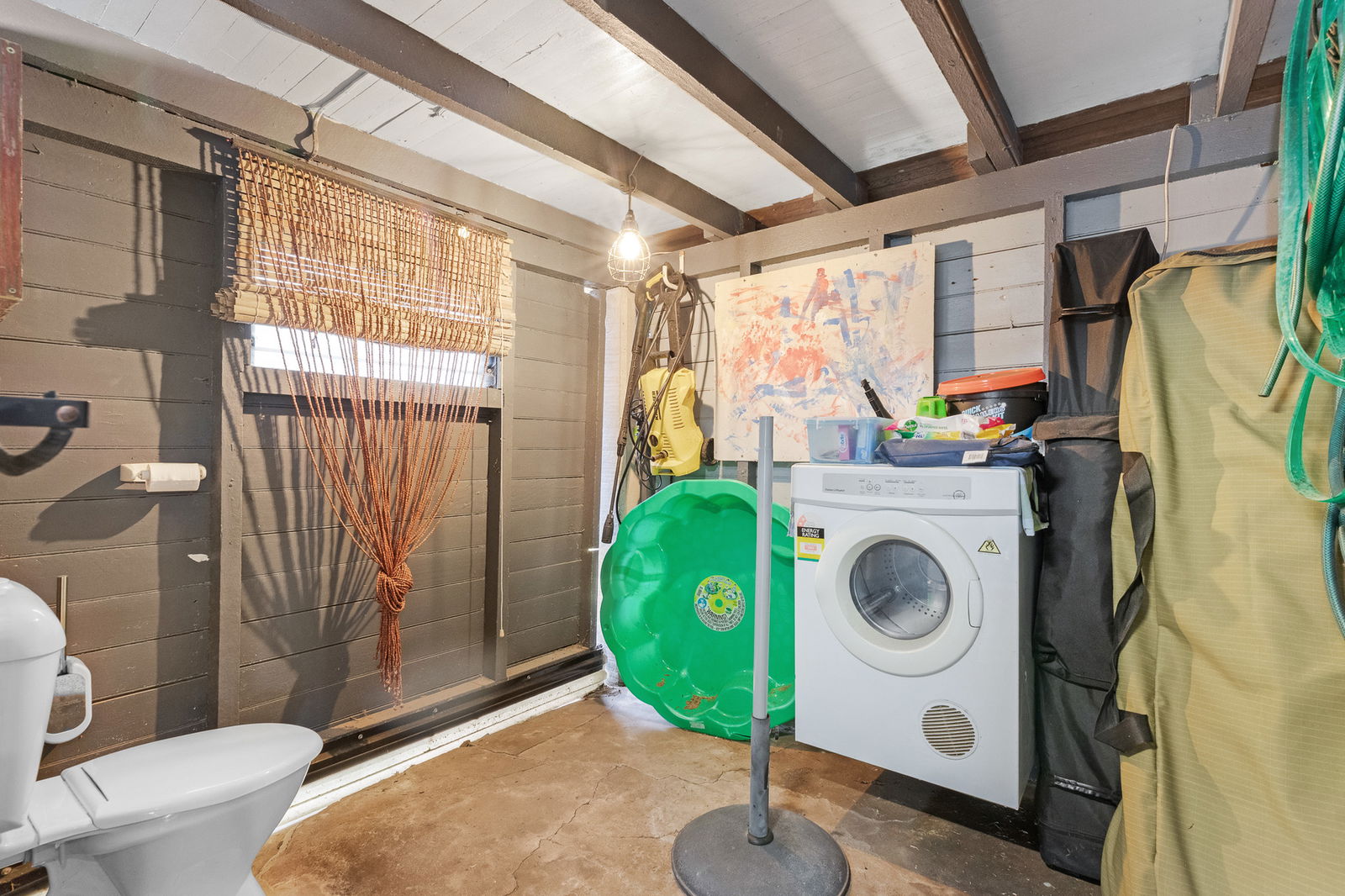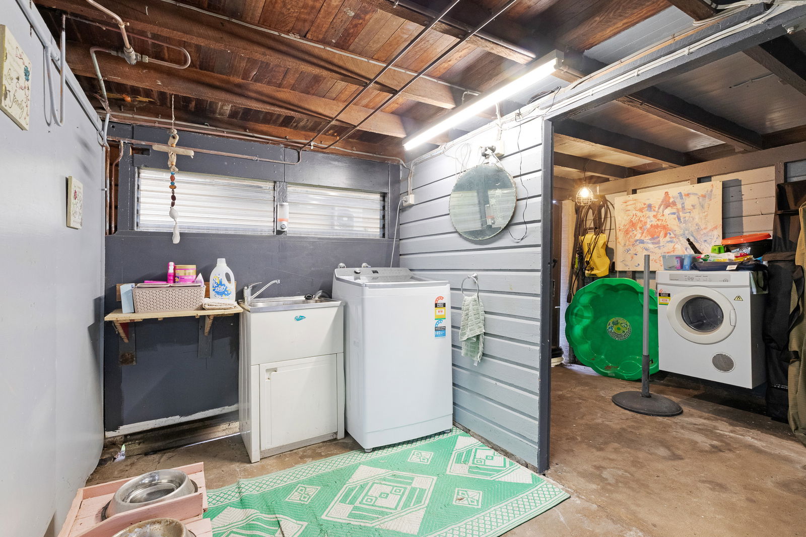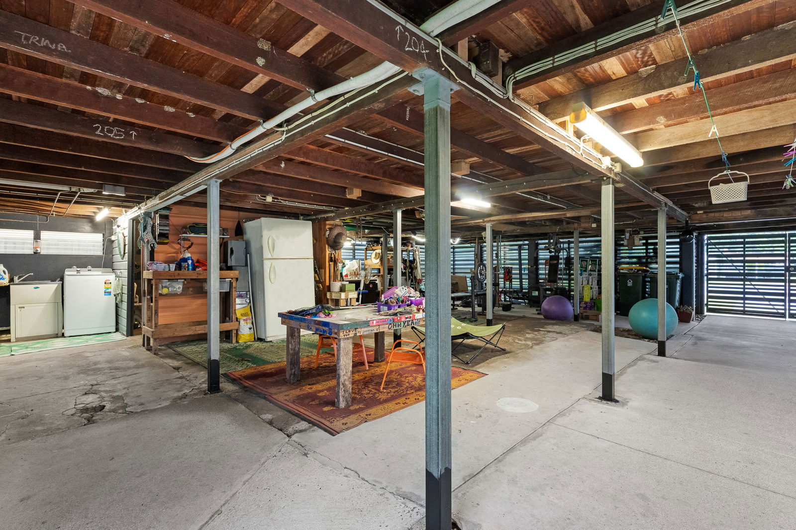 Underneath, the home is set on sturdy steel stumps, offering ample storage and workshop space, along with secure accommodation for up to three vehicles.