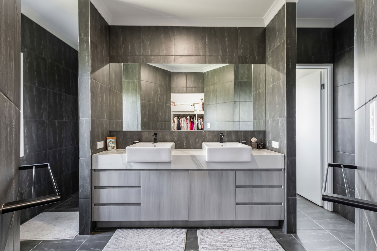 - Master suite with walk-in robe and luxurious ensuite featuring double vanity, large shower, and separate toilet
