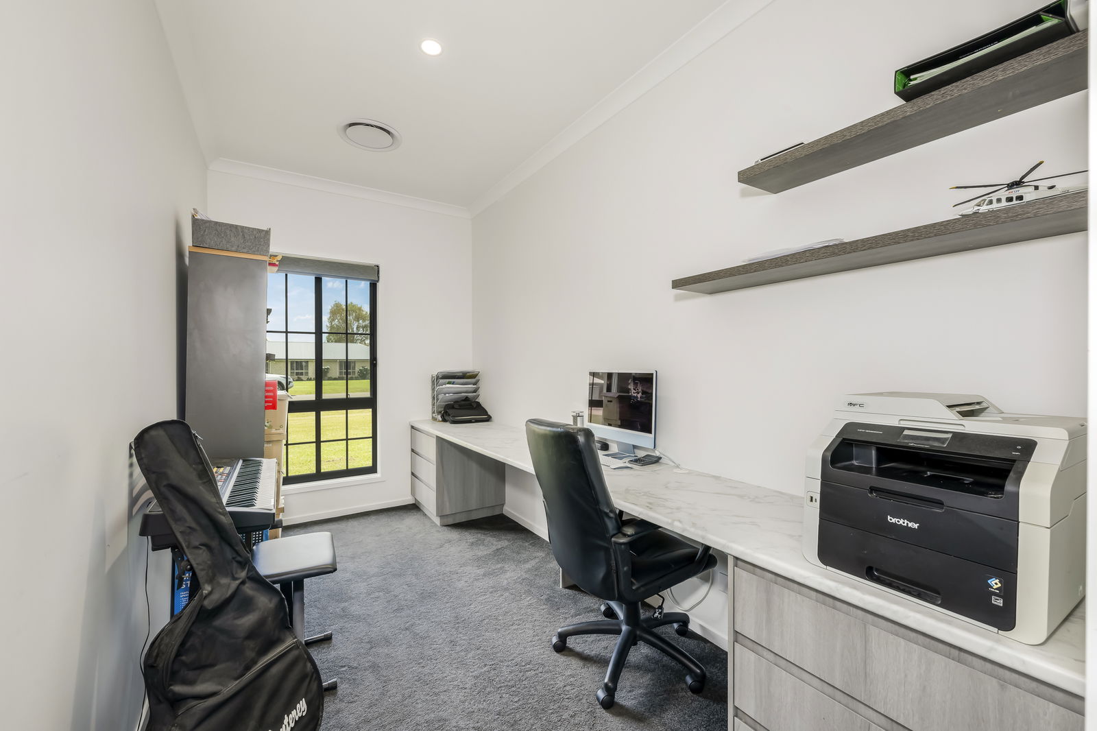 - Four spacious bedrooms plus dedicated office with built-in desk for two workstations