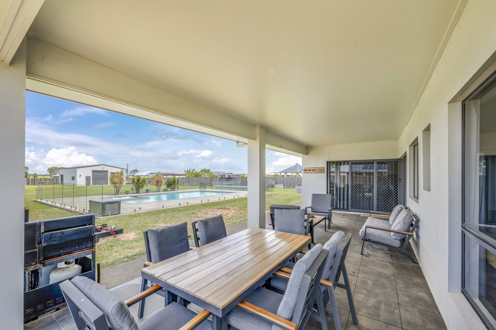 - Extended alfresco entertaining area overlooking magnesium swimming pools with spa