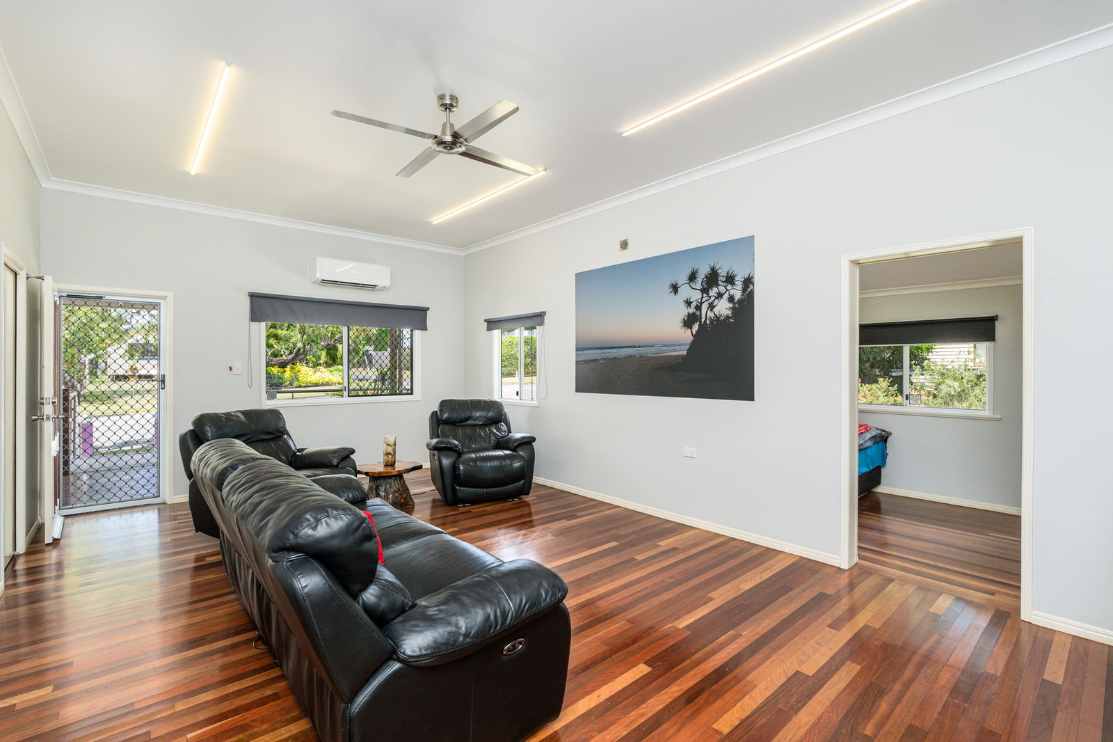Three bedrooms, main with generous walk-in robe, 2nd with built in robes and 3rd bedroom has adjoining study.
