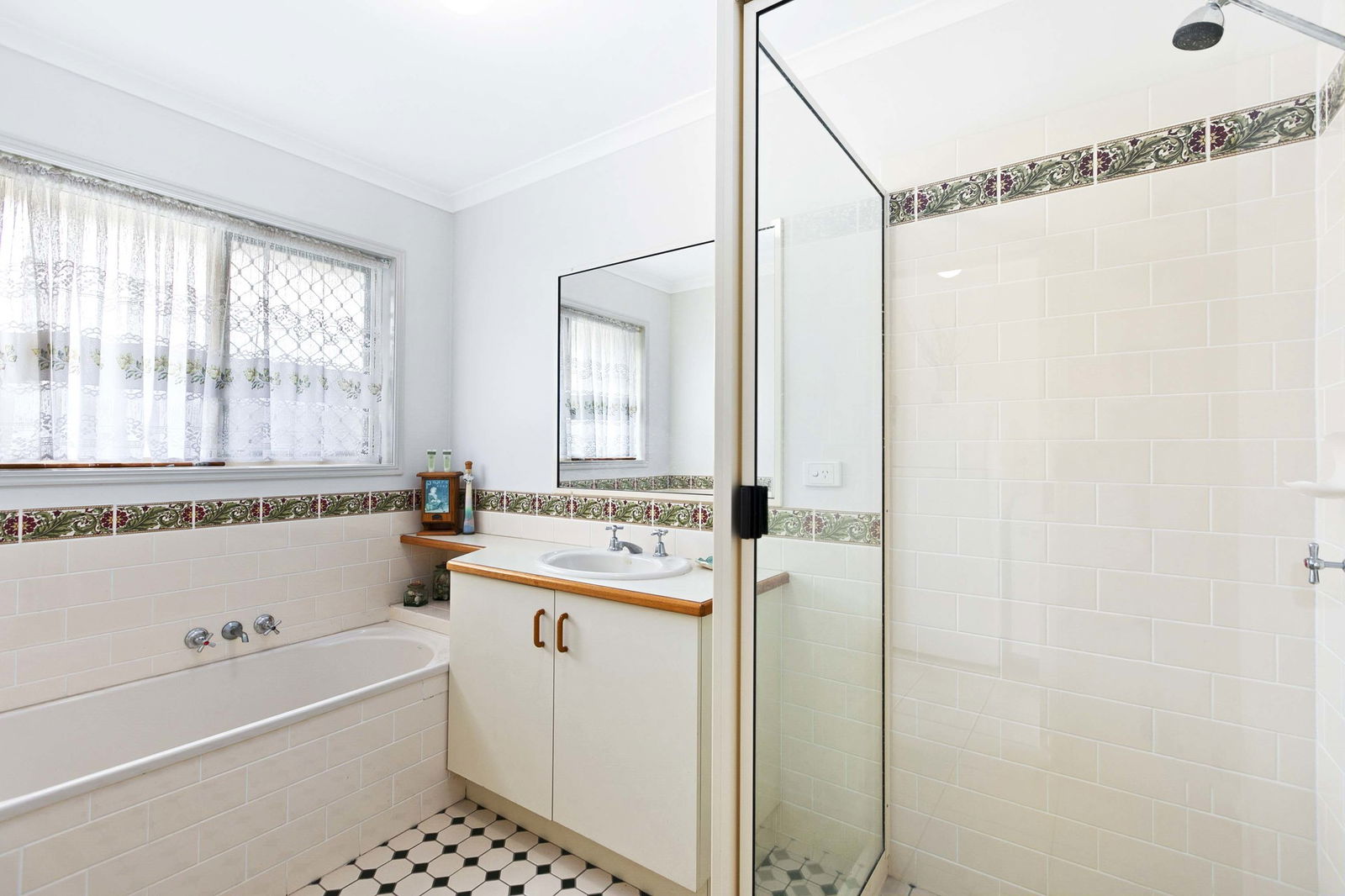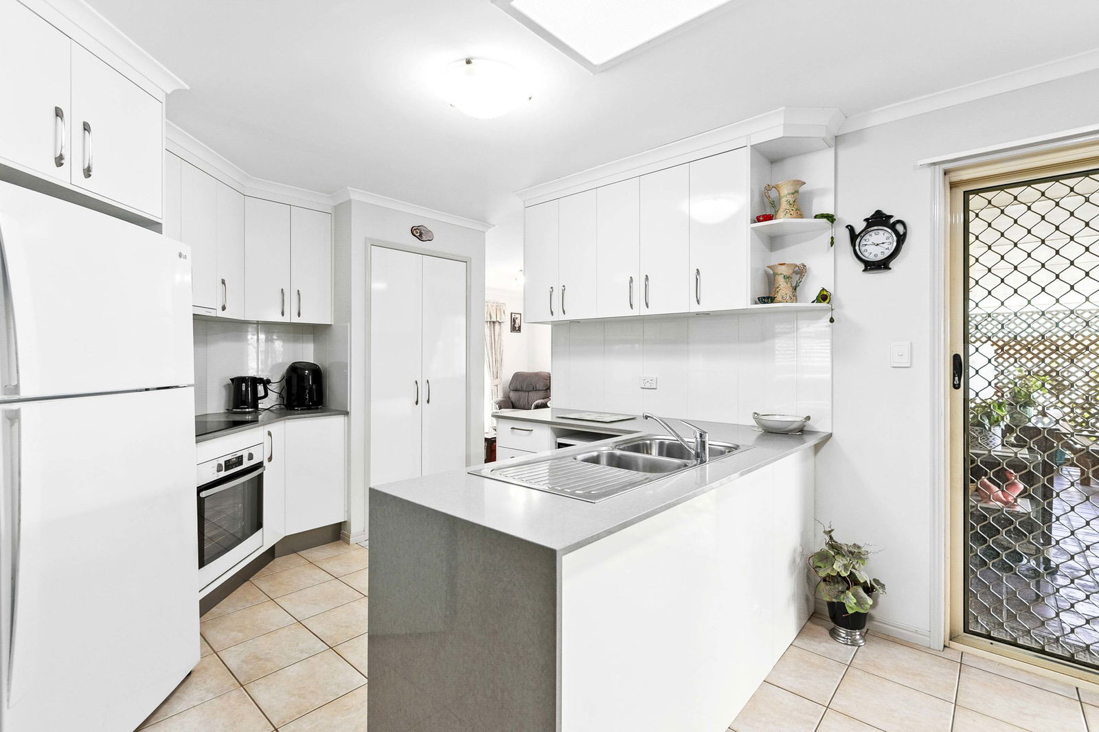 - Updated kitchen with stone benches and white cabinetry