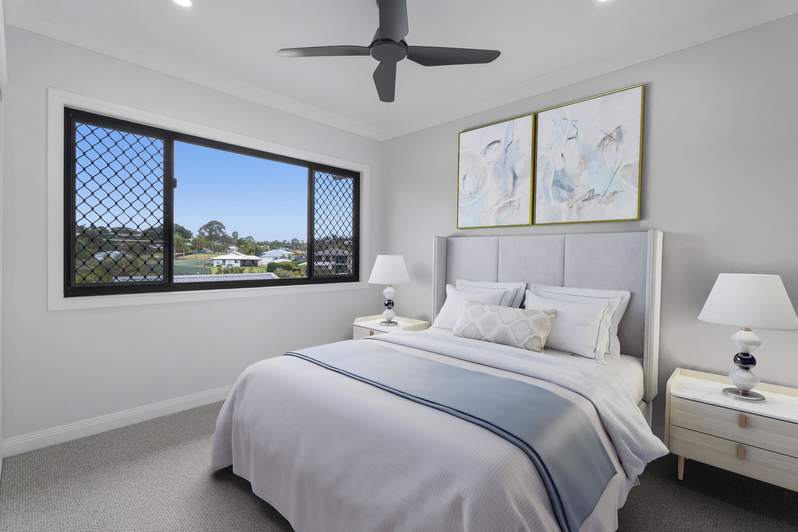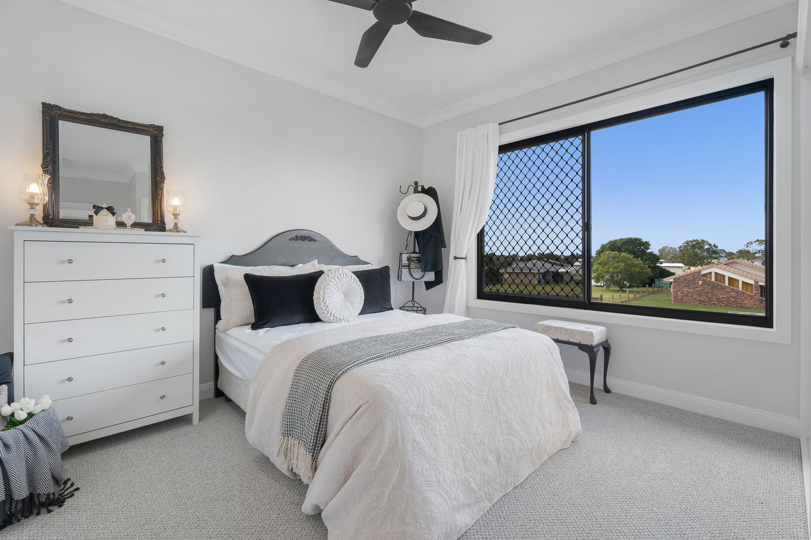 • Black framed windows with diamond mesh screens