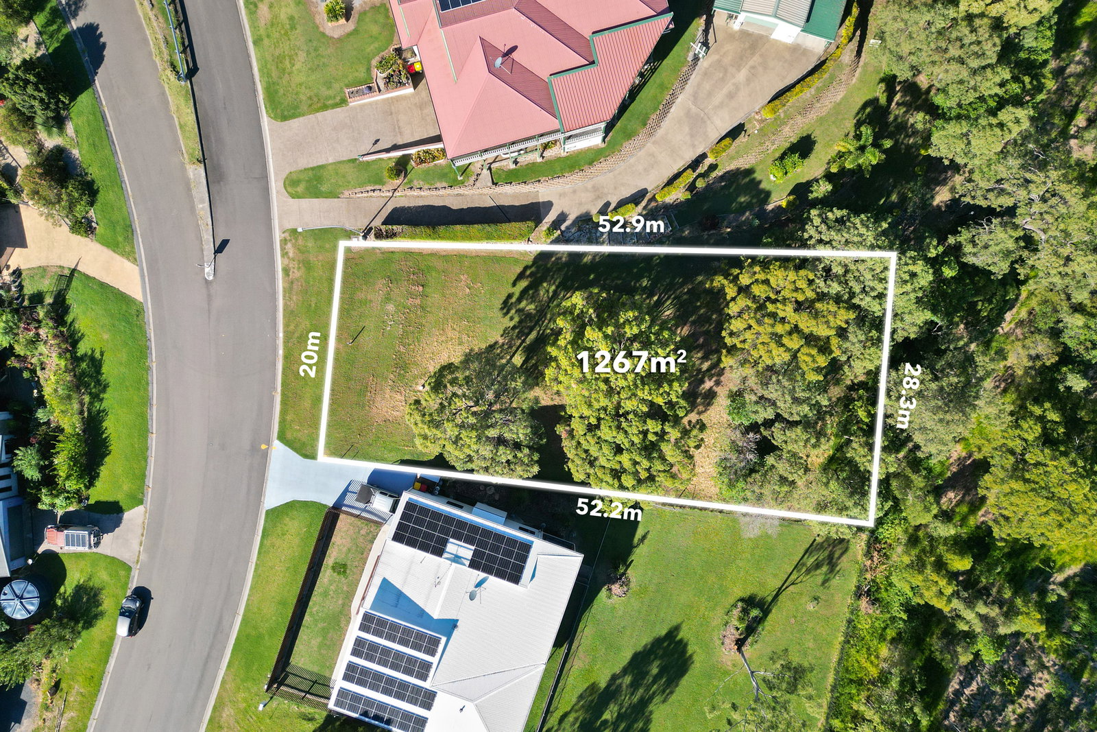 1,267m² with frontage of approximately 20m and depth of 52-53m