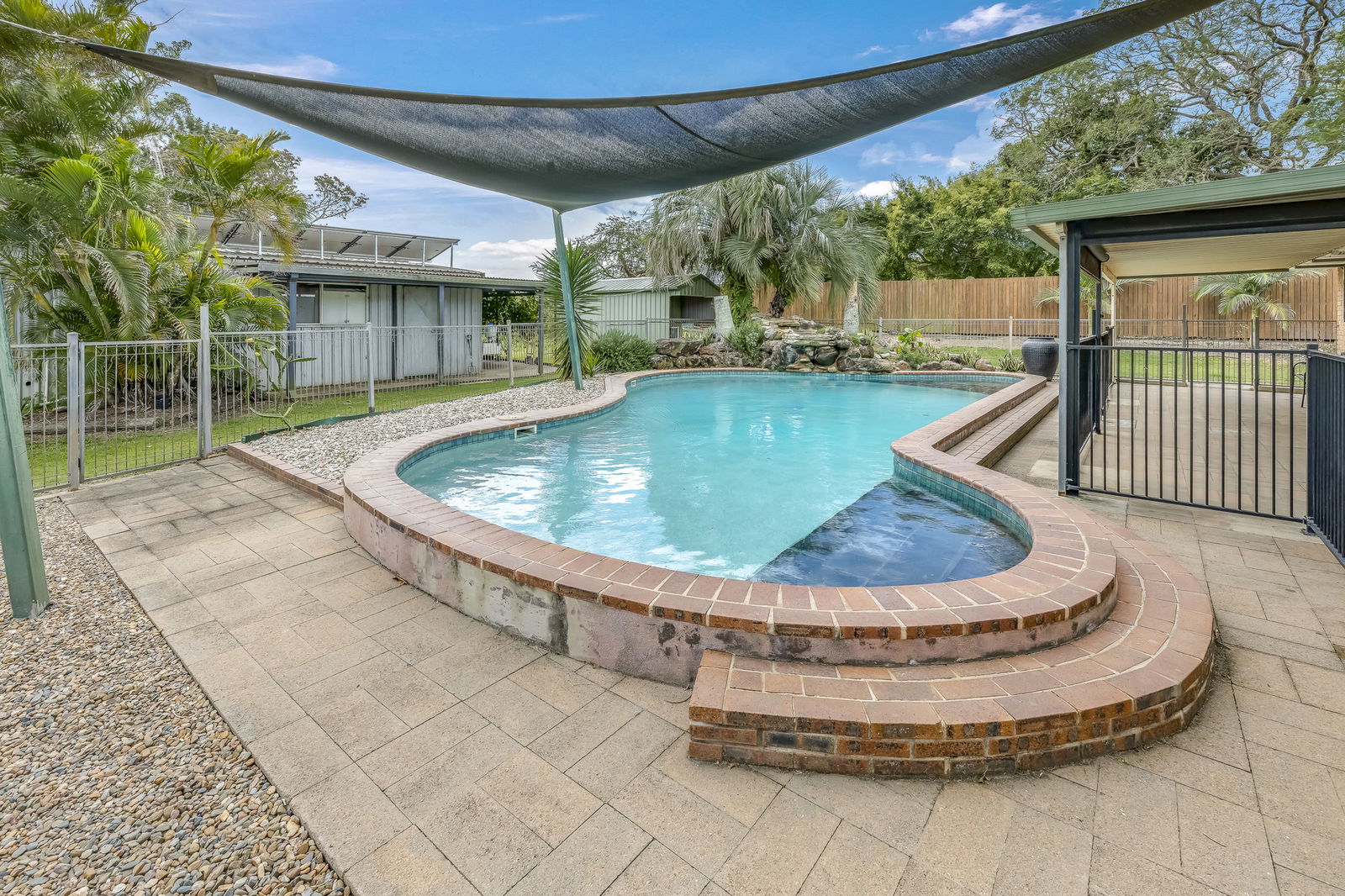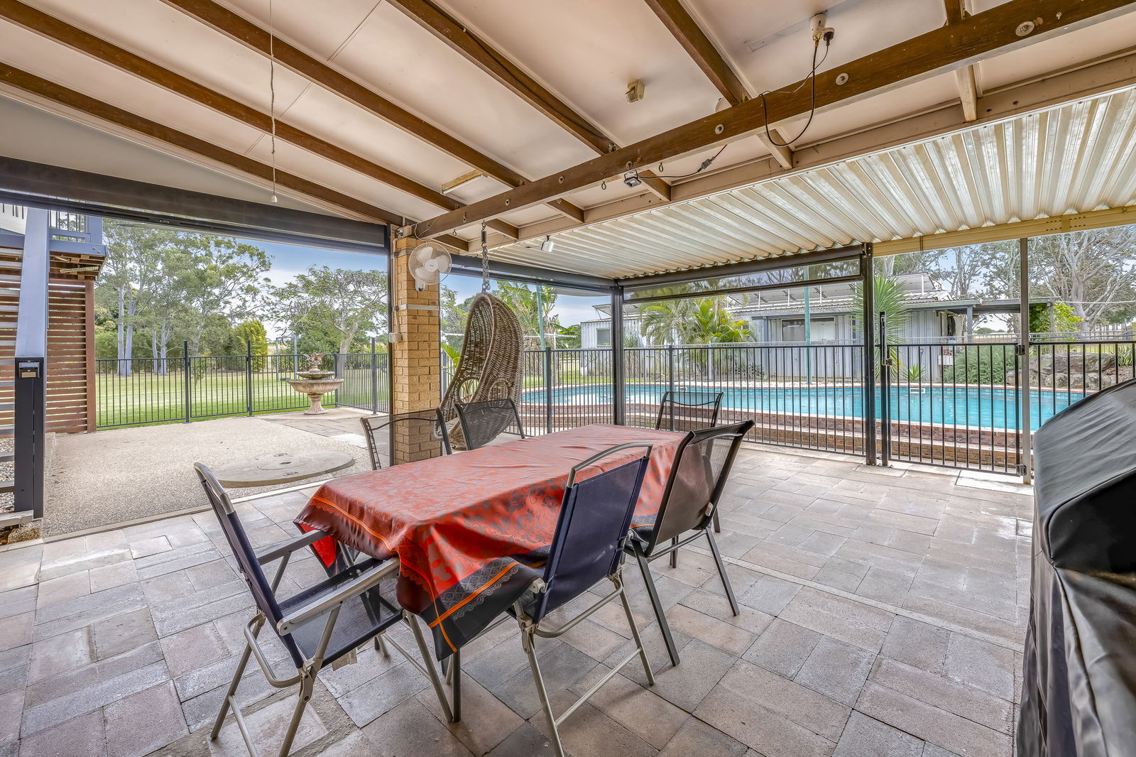 - Expansive fenced outdoor entertaining area overlooking the pool.