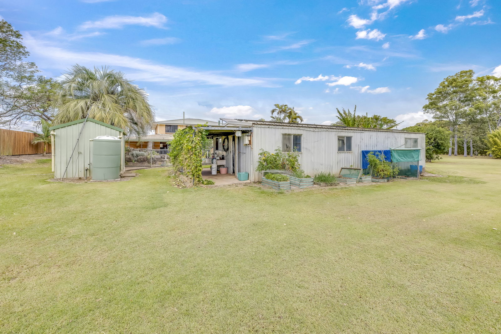 - 4-bay shed at the rear with workshop space and 2-car accommodation.