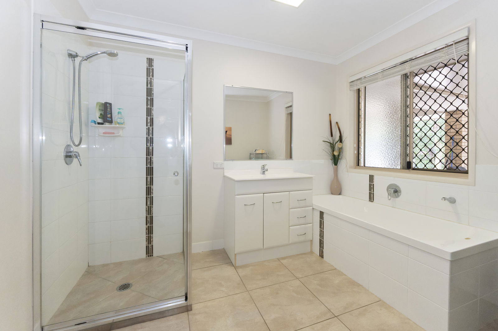• Large main bedroom suite: A/C, parents' retreat with slider to the alfresco patio, substantial walk-in robe and a huge ensuite with double vanity and 1,200 × 1,200 mm shower