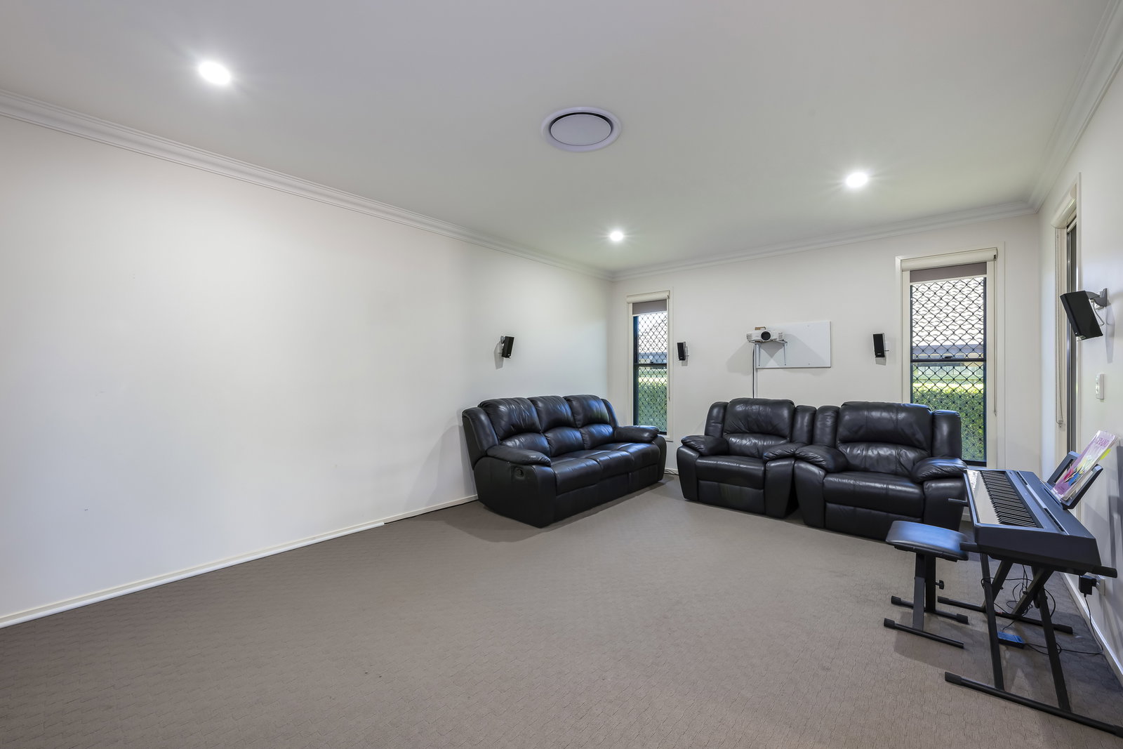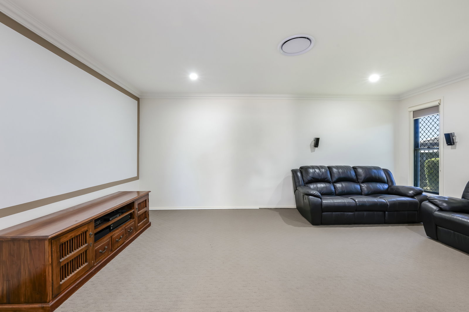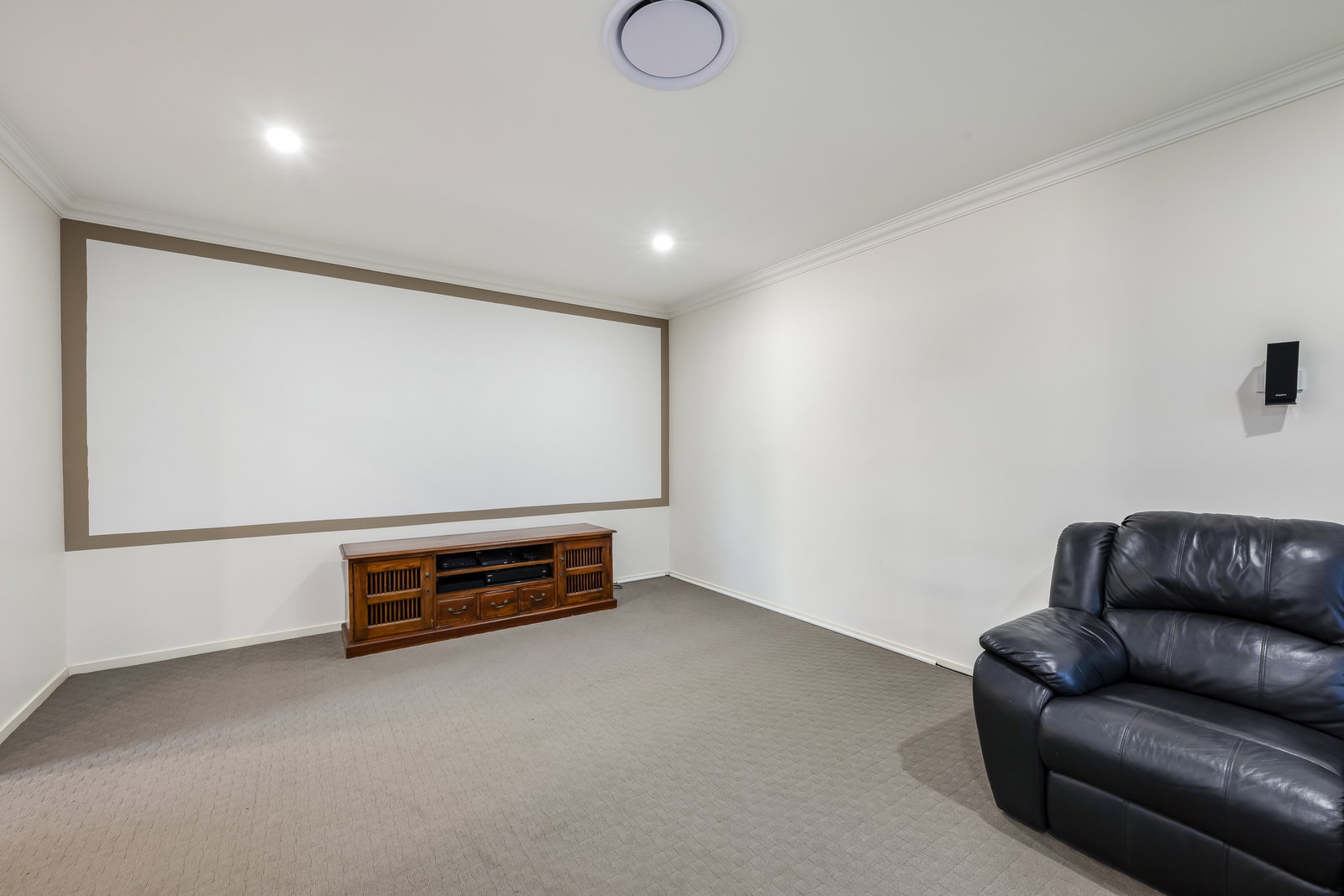 A dedicated, fully equipped media room provides the ultimate entertainment experience, complete with projector, speakers and wired sound system.