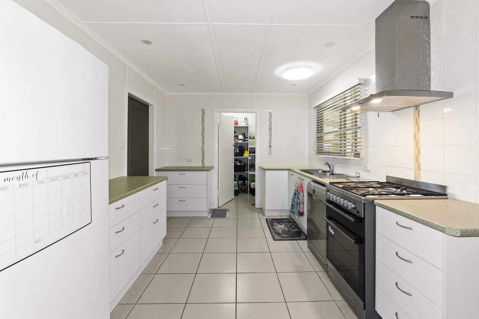 • Galley kitchen: tiled with a walk-in pantry, stainless dishwasher, and 600 mm stainless gas range, adjoining a spacious dining area that fits an 8-seater setting